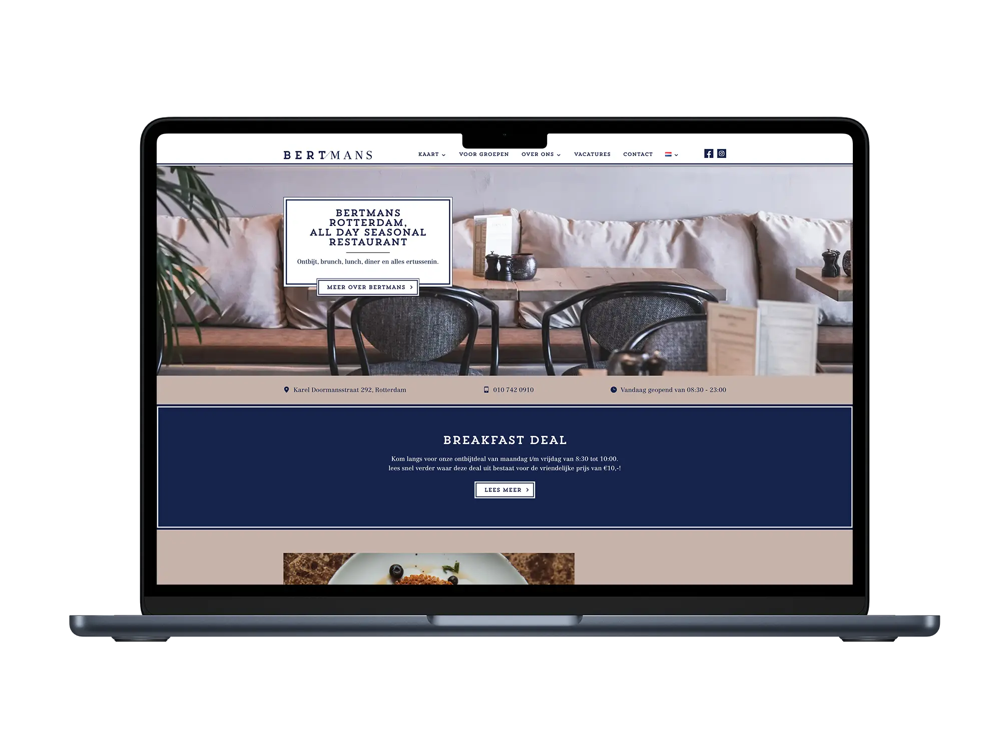 Een succesvolle website doet meer dan alleen je zaak presenteren. Het is een platform waar gasten het menu bekijken, sfeer proeven, arrangementen ontdekken en eenvoudig een tafel, kamer of event boeken. Wij zorgen ervoor dat jouw website niet alleen visueel aantrekkelijk is, maar ook optimaal functioneert door gebruiksgemak, online vindbaarheid en social media-integratie te combineren.
