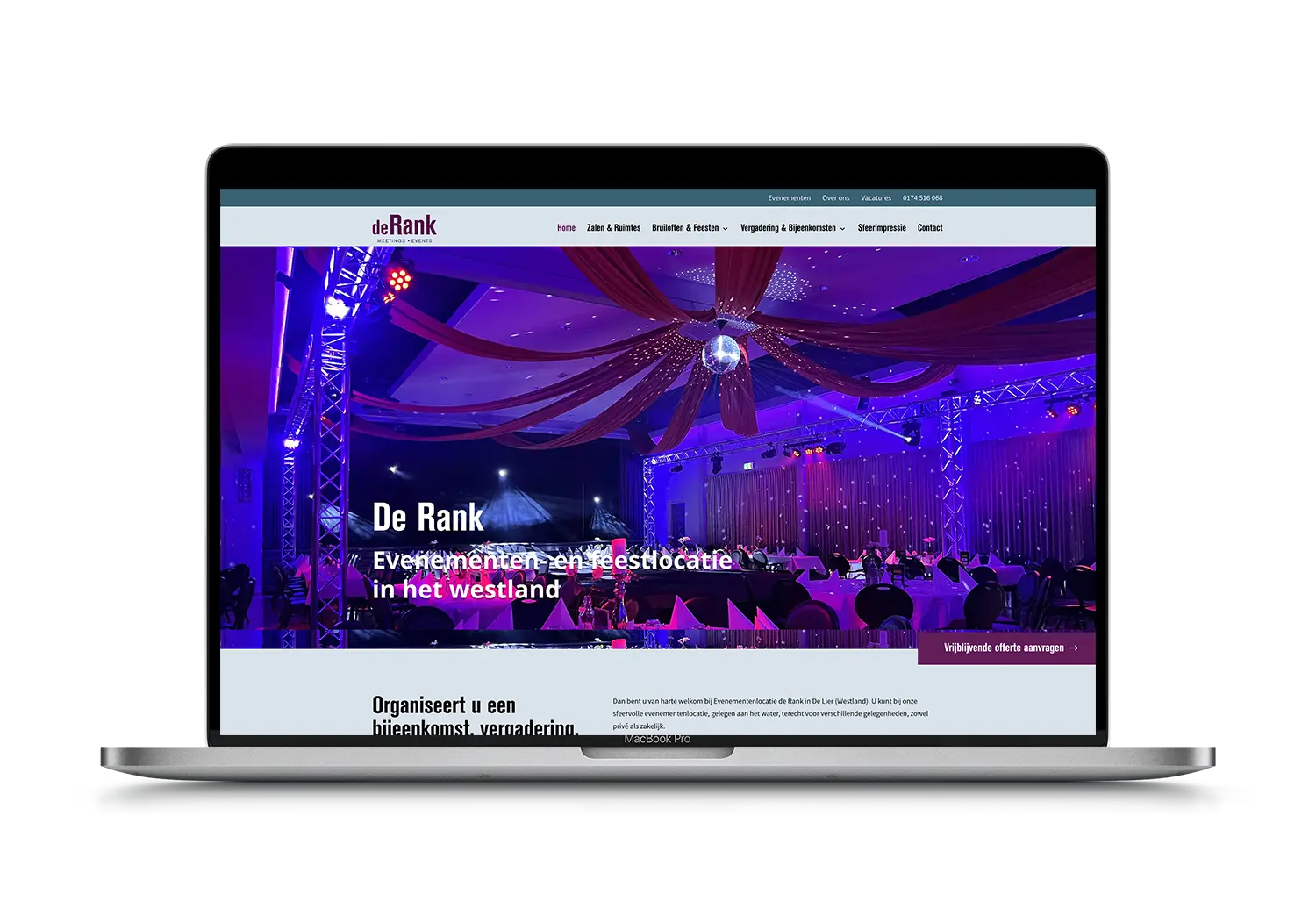 Evenementenlocatie de Rank in De Lier (Westland) is een sfeervolle locatie voor diverse gelegenheden. We hebben een website gemaakt die de beschikbare ruimtes toont en uitgebreide informatie biedt over de mogelijkheden en faciliteiten.