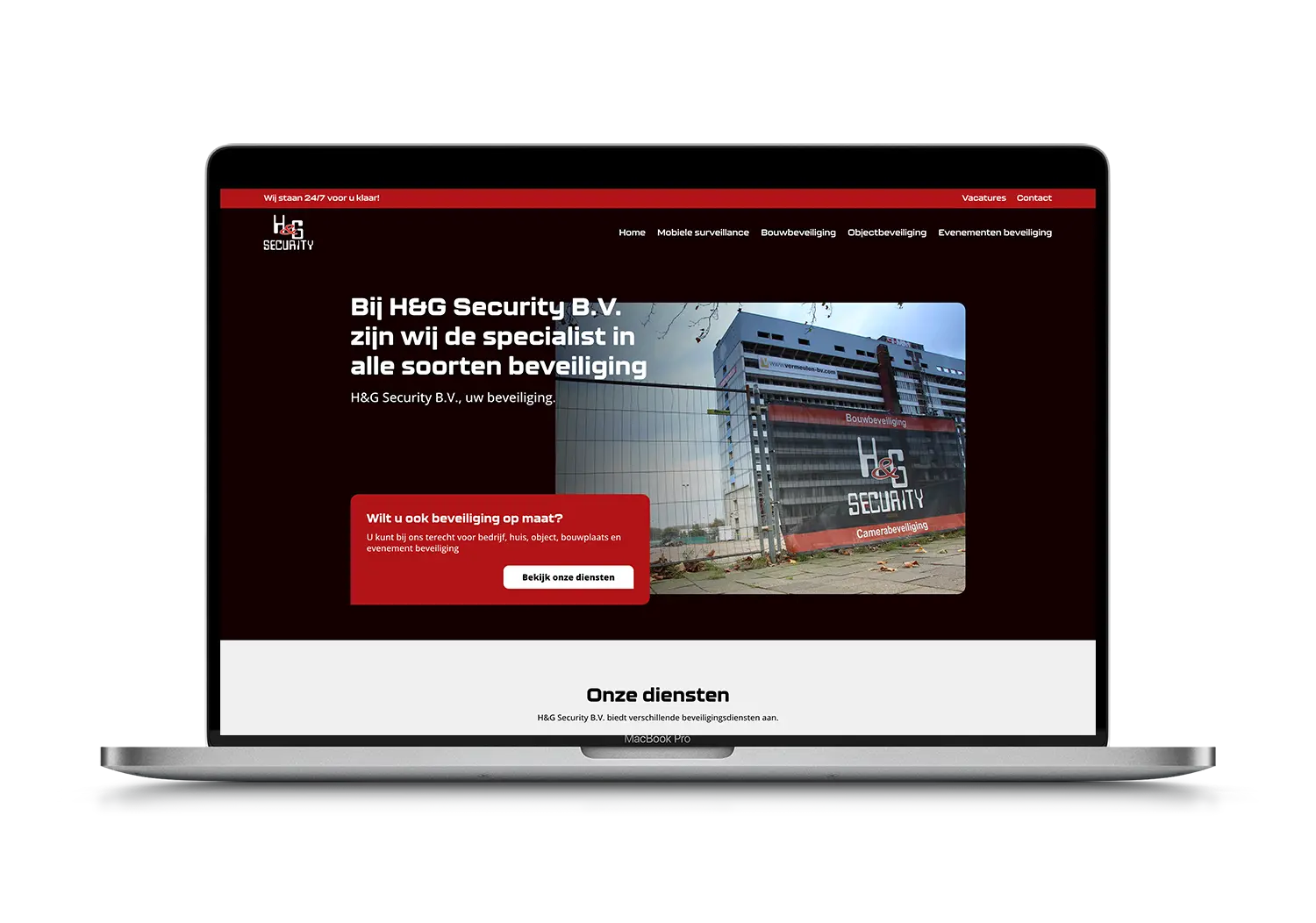 H&G Security is een beveiligingsbedrijf dat gespecialiseerd is in het bieden van verschillende beveiligingsdiensten in het Westland, van evenementenbeveiliging tot mobiele surveillance. Wij hebben een website ontwikkeld waarin bezoekers direct kunnen zien welke beveiligingsdiensten worden aangeboden en gemakkelijk een dienst kunnen huren.