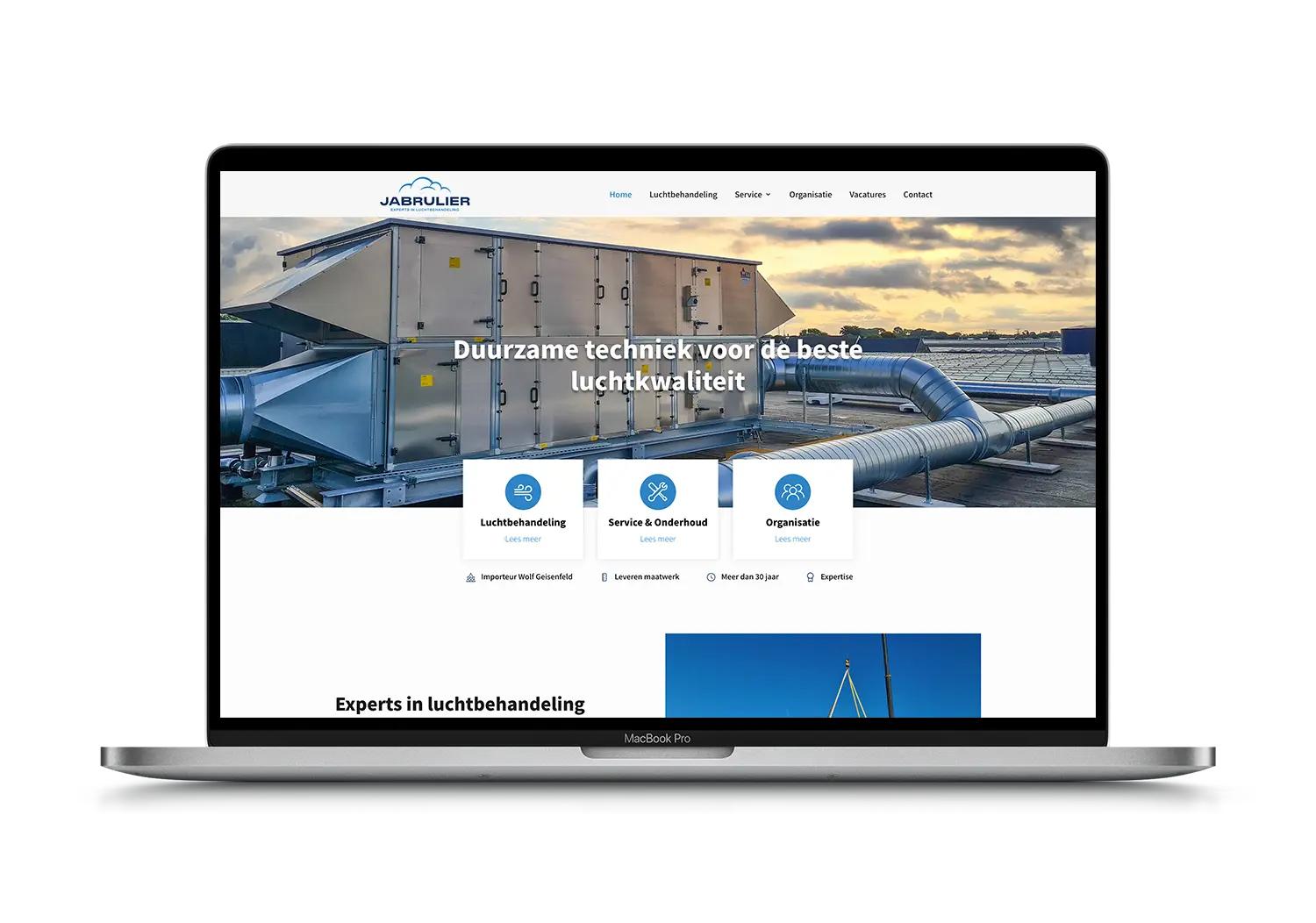 Jabrulier is een Nederlands bedrijf dat gespecialiseerd is in luchtbehandelingsoplossingen. Ze ontwerpen en leveren maatwerkoplossingen op het gebied van klimaattechniek, zoals luchtbehandelingskasten, direct aan installateurs. Voor Jabrulier hebben we een website ontwikkeld die hun kennis en ervaring in luchtbehandelingssystemen uitgebreid en overzichtelijk presenteert.