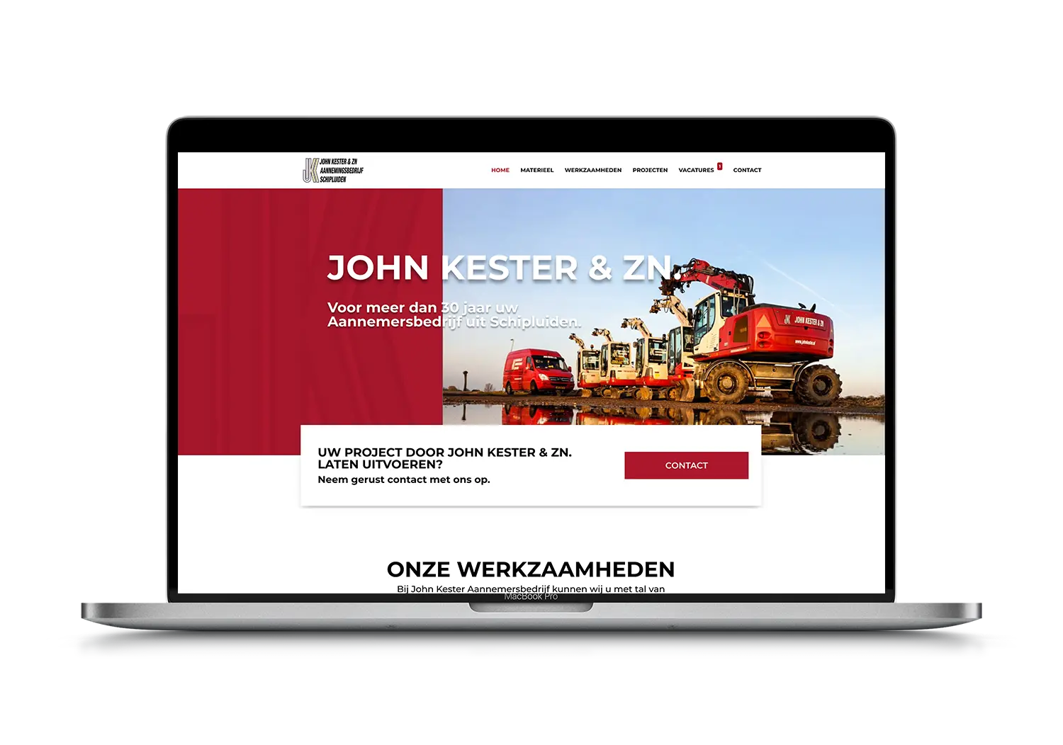 John Kester & Zn. is een aannemersbedrijf uit Schipluiden met meer dan 30 jaar ervaring. Ze bieden een breed scala aan diensten, waaronder beschoeiing, grondverzet, bestrating, rioleringen, en de aanleg en reparatie van gas, water en elektra. Met hun uitgebreide ervaring kunnen ze diverse projecten aan, zowel voor particulieren als bedrijven. We hebben een website ontworpen die hun uitgebreide diensten en expertise overzichtelijk weergeeft.
