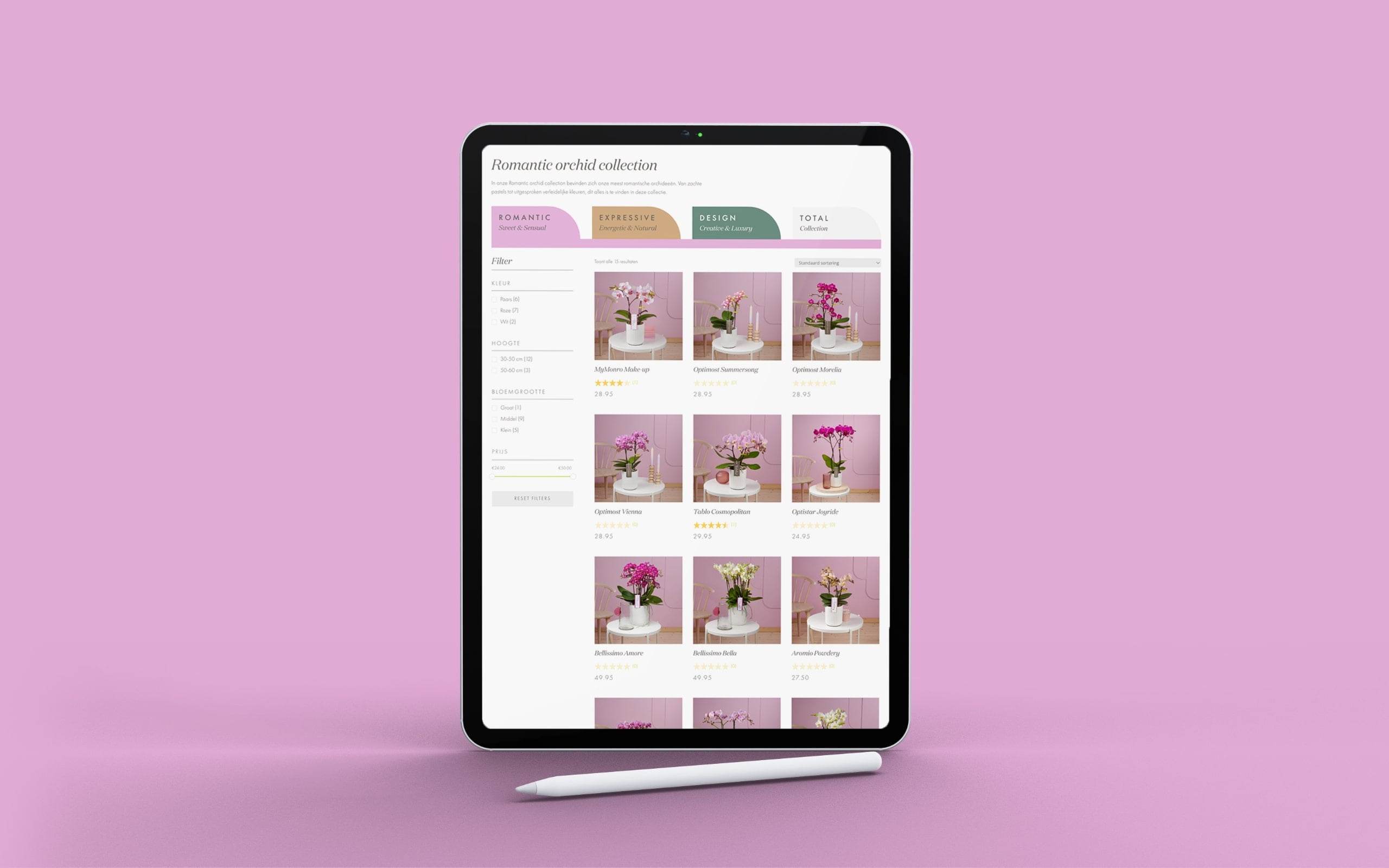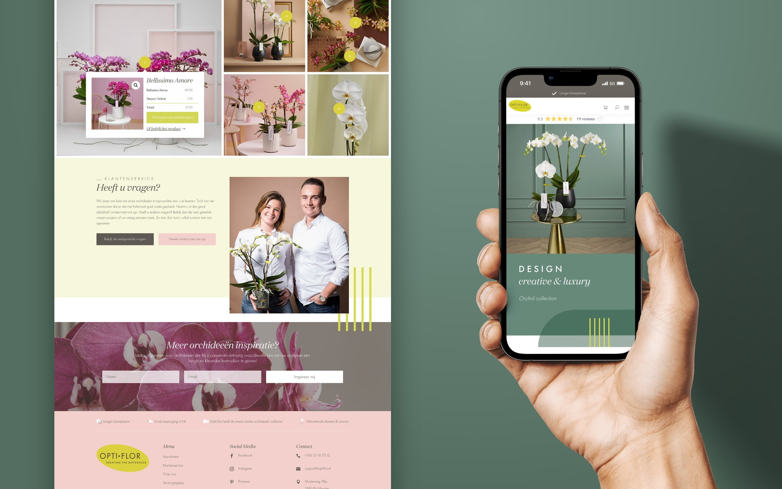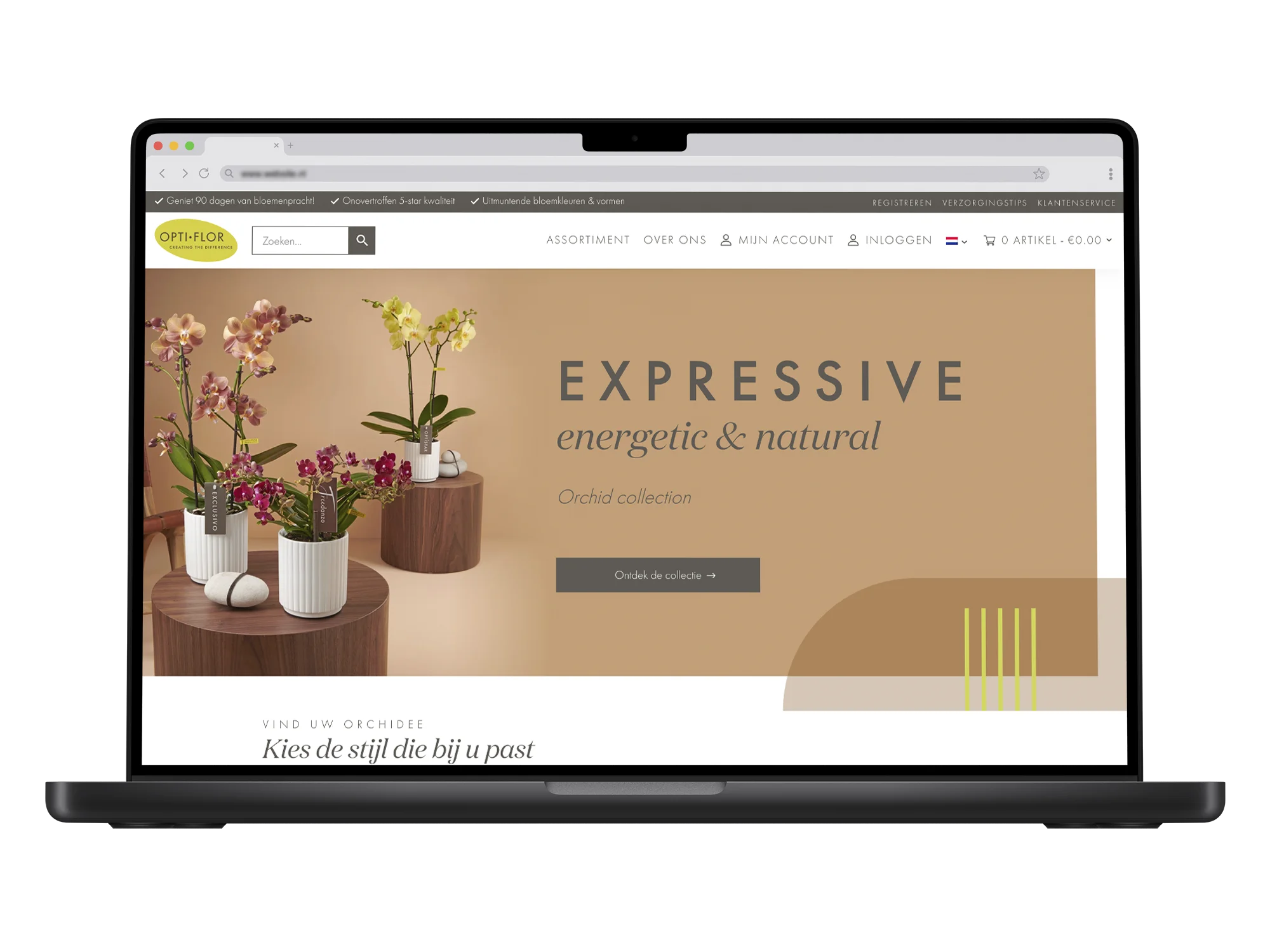Voor Opti-flor hebben we consumenten webshop volledig mogen vernieuwen! Het doel van de webshop is om data te verzamelen, deze om te zetten tot bruikbare informatie en te delen met de B2B-partners van Opti-flor. Het eindresultaat is een professionele en uitgebreide webshop waarbij de consument gemakkelijk een Orchidee in combinatie met een sierpot kan bestellen!