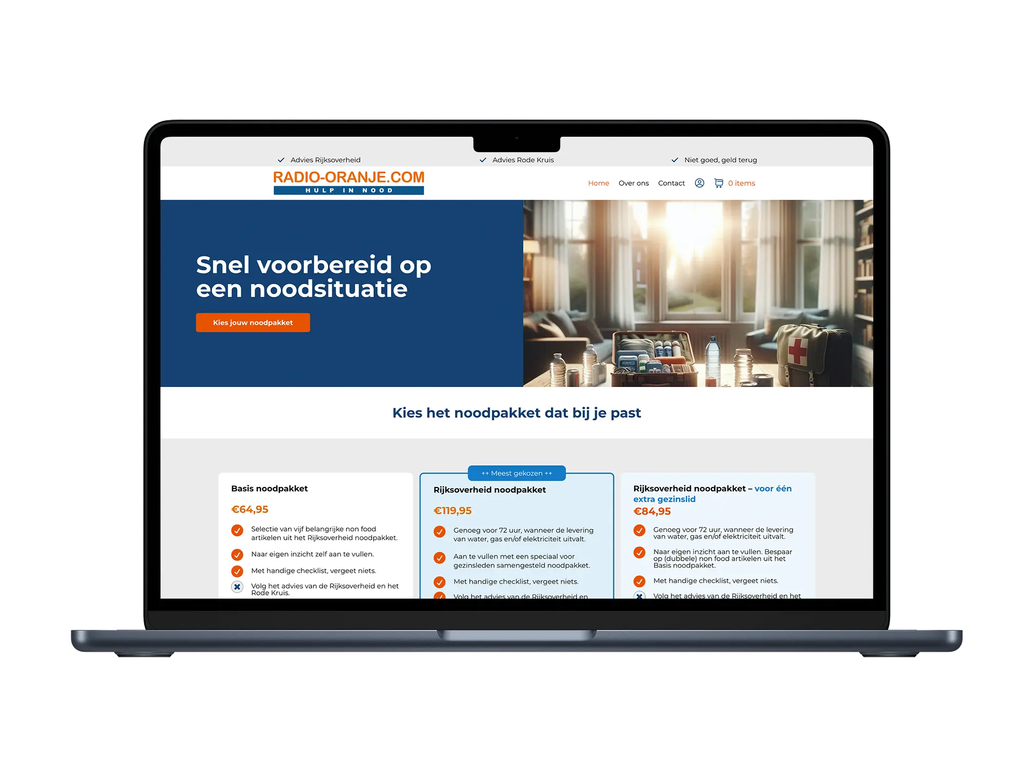 Toen we bij Radio Oranje begonnen met het opzetten van een nieuw merk rond noodpakketten, wisten we dat onze website méér moest zijn dan alleen een webshop. Het moest een plek worden die vertrouwen uitstraalt, praktische informatie geeft én aanzet tot actie, zonder doemdenken. StudioMVP heeft dat feilloos aangevoeld en vormgegeven.