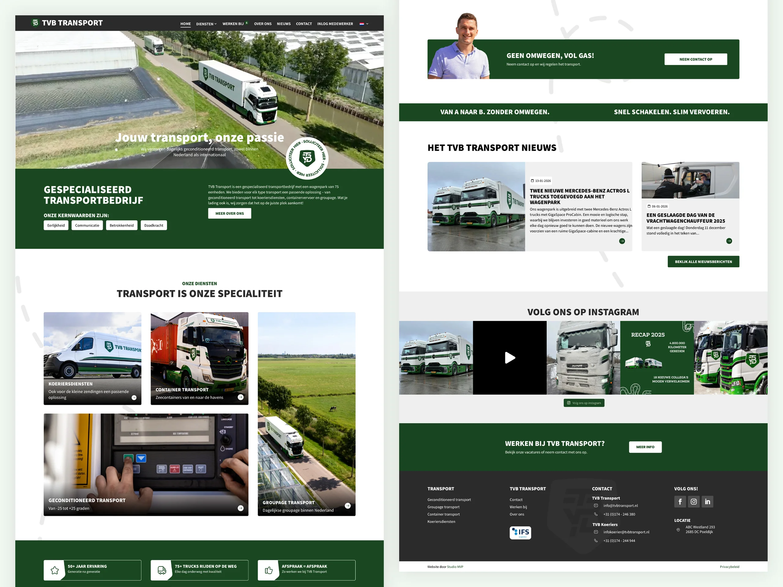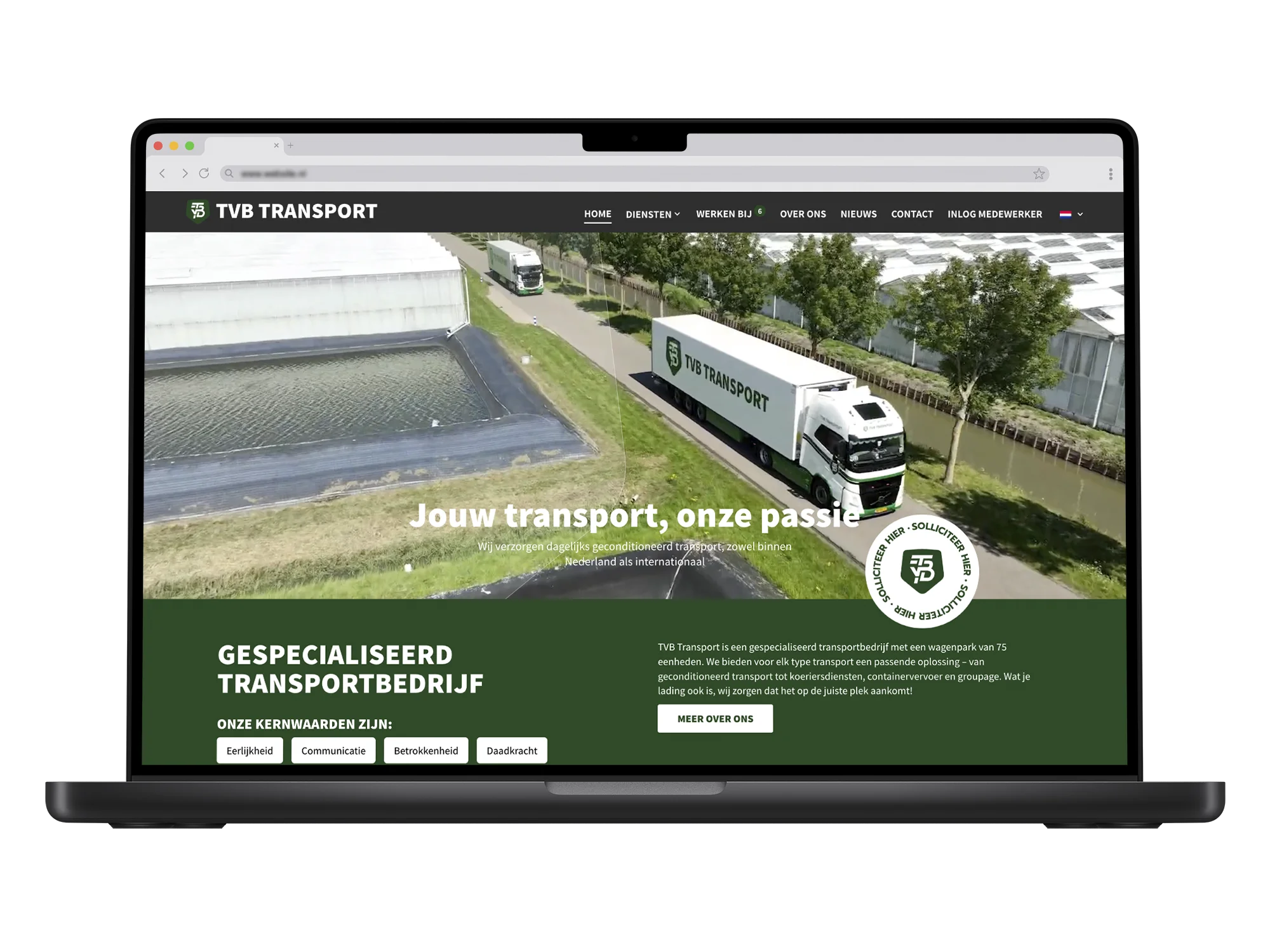Voor TVB Transport hebben we een nieuwe website gemaakt. TVB Transport is gespecialiseerd in geconditioneerd transport binnen en buiten Nederland. De website biedt een uitgebreide en overzichtelijke presentatie van het bedrijf en zijn diensten.