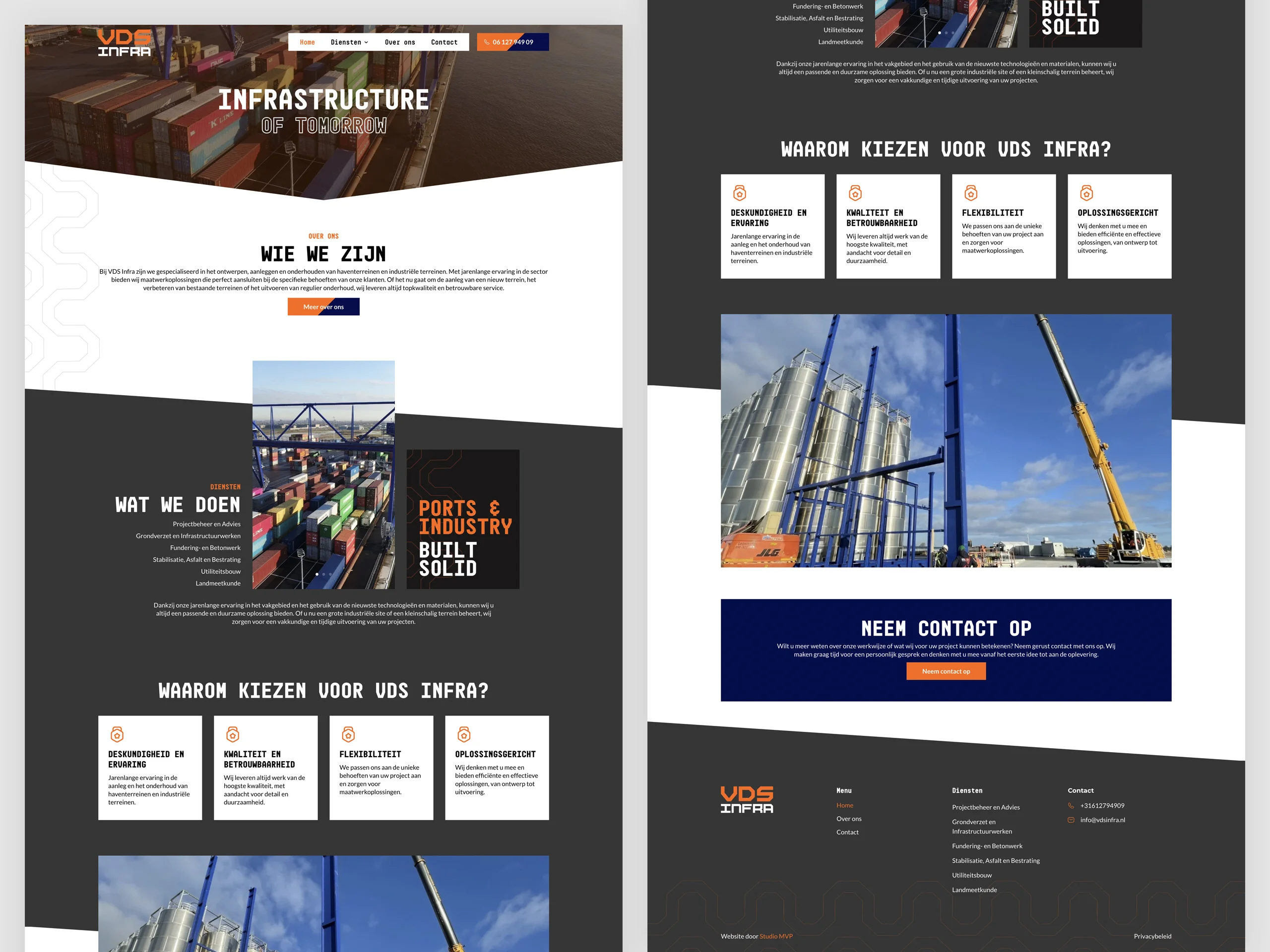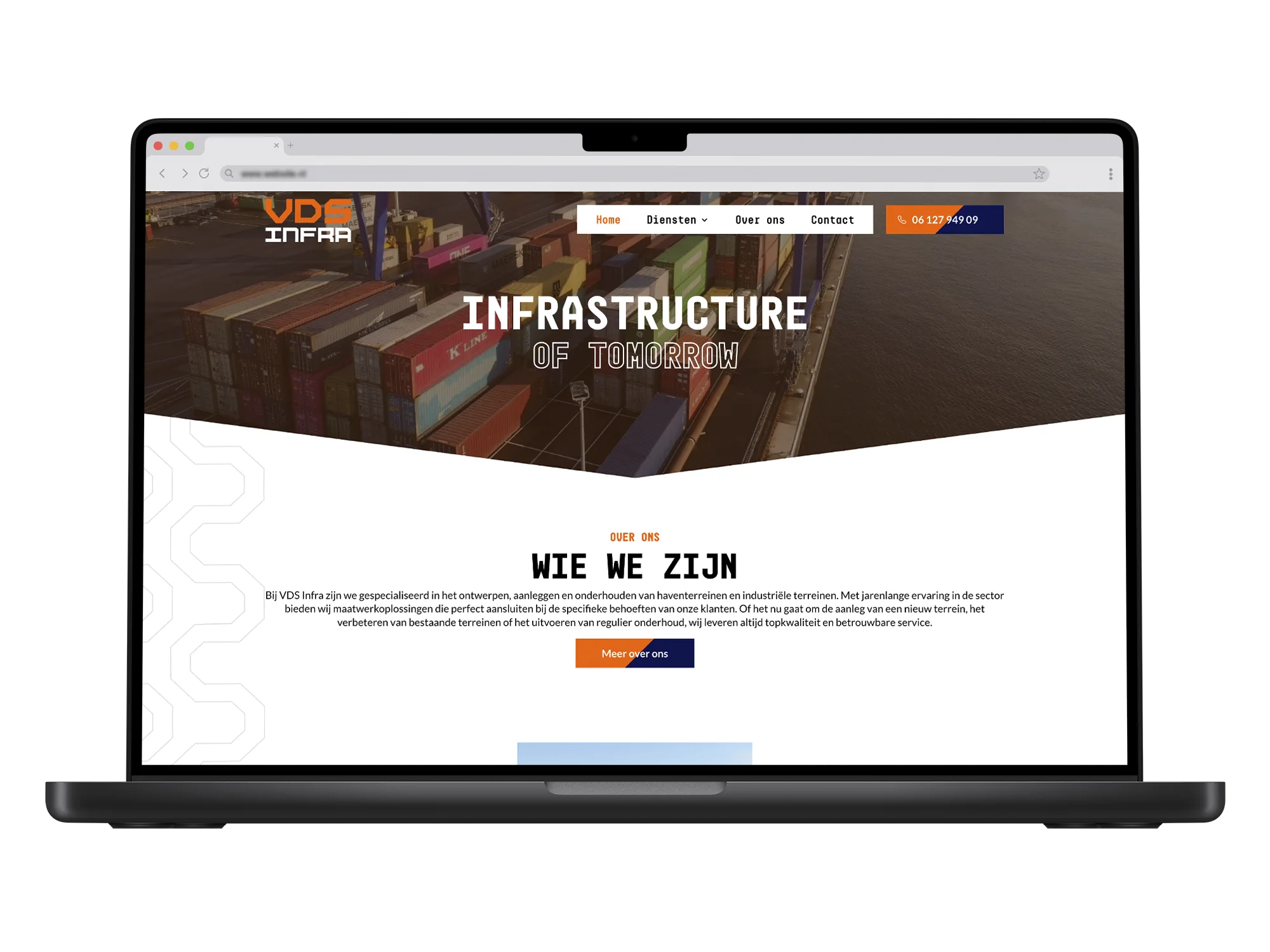 De website is ontworpen met een duidelijke structuur en prestatiegerichte content, zodat bezoekers snel inzicht krijgen in de dienstverlening, projecten en waarden van het bedrijf. Het resultaat is een consistente, krachtige branding en een gebruiksvriendelijk online platform die samen zorgen voor een herkenbare en professionele presentatie van VDS Infra.