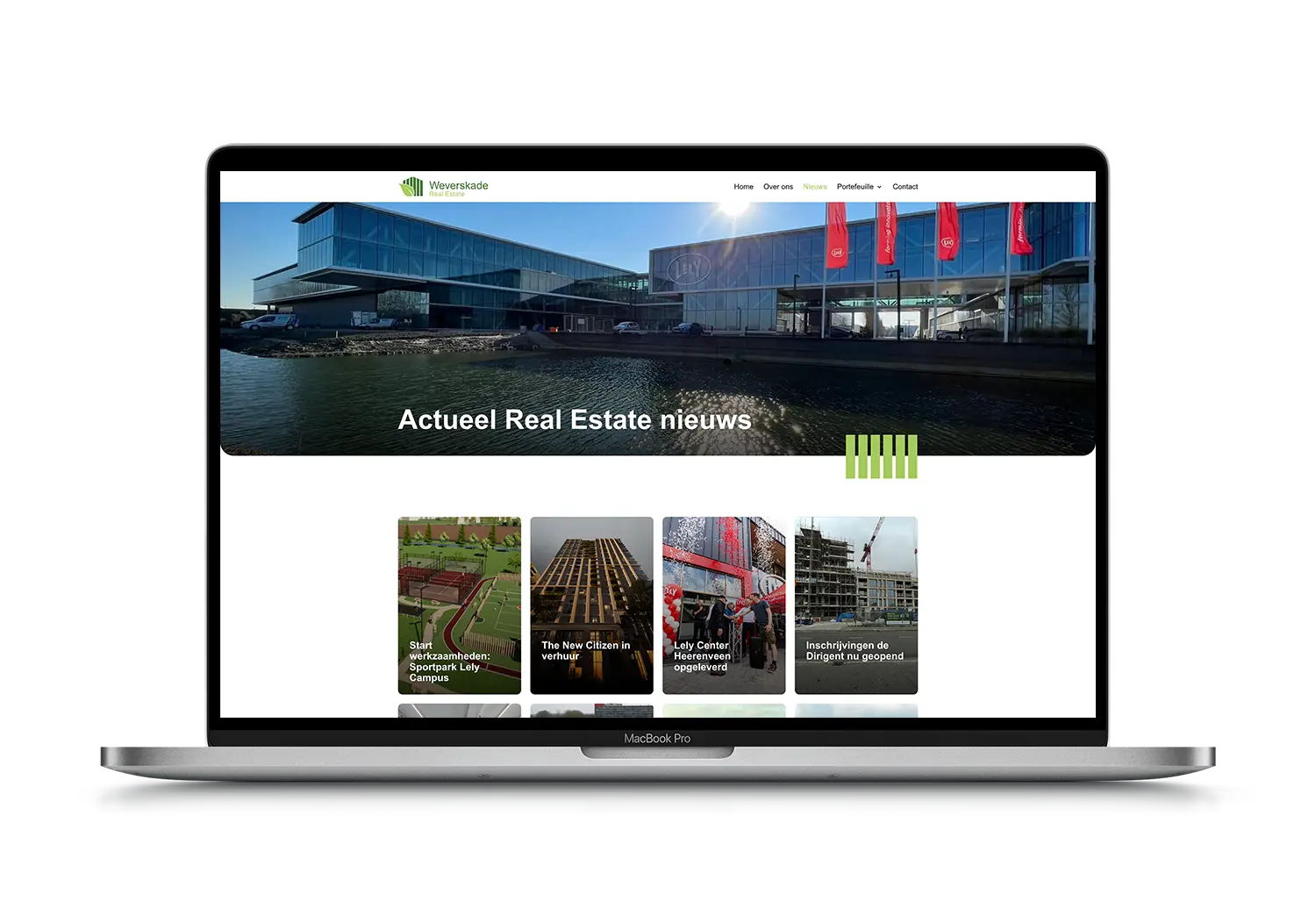 Voor Weverskade hebben we een website gebouwd. Weverskade is een ontwikkelende belegger. Die focust op innovatieve en duurzame vastgoedproducten die aansluiten bij onze missie om de wereld beter achter te laten. De website laat de projecten zien samen met hun verhaal en nieuws.